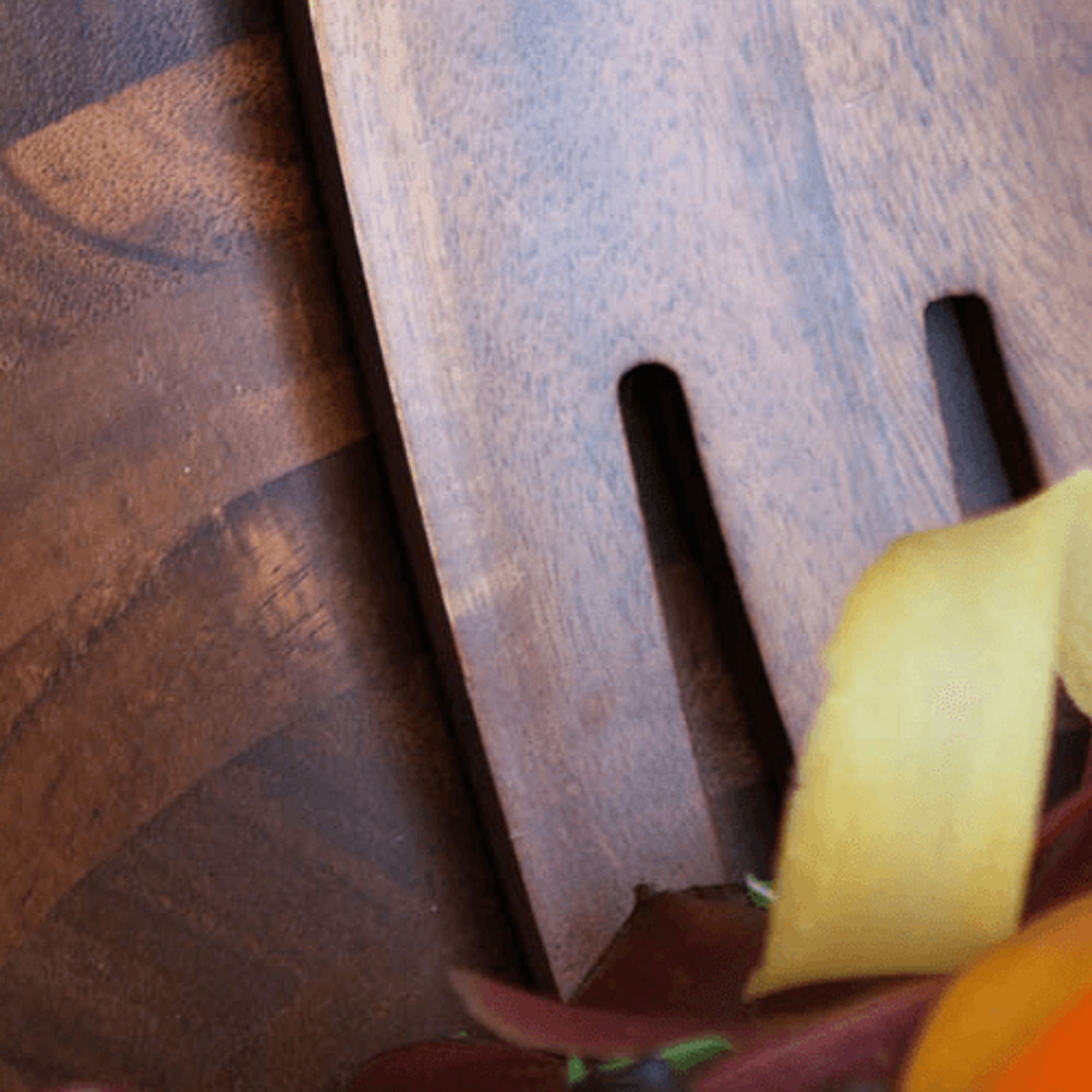 The Toscana brand of Picnic Time presents the Fabio Viviani Mescolare salad bowl, made of beautiful acacia wood with a rich grain pattern.